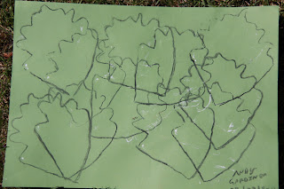 A very textural piece made by taping paper around the tree bark and taking a rubbing using soft pastel in various tones.